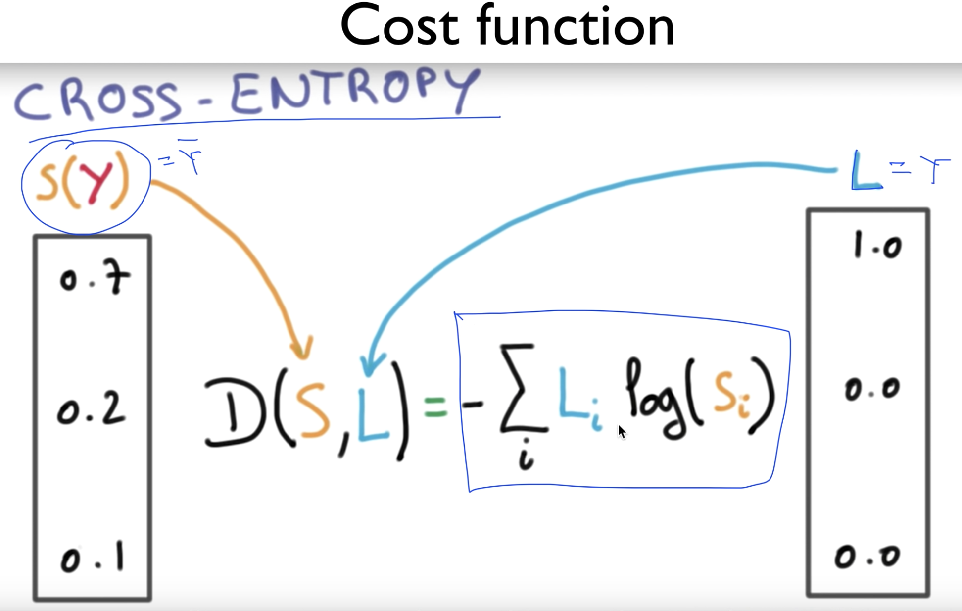 Logistic cost VS cross entropy 여러개의 training set -> cost function -> Gradient descent     '인공지능 및 기계학습 개론 > ML_LEC' 카테고리의 다른 글ML lec 07-1: 학습 rate, Overfitting, 그리고 일반화 (Regularization) (0) 2020.02.11 ML lec 06-1 Softmax Regression: 기본 개념 소개 (0) 2020.02.11 ML lec 03 - Linear Regression의 cost 최소화 알고리즘의 원리 설명 (0) 2020.02.10 ML lec 02 - Linear Regression (0) 2020.02.10 ML lec 01 - 기본적인 ML용어와 개념 정리 (0) 2020.02.10