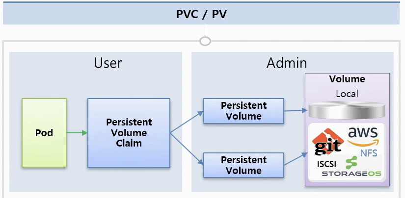 - pvc 까지 유저 영역 / pv는 admin 영역