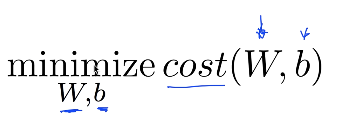 Cost 를 최소화 하는 W,b를 구하는 것이 목표 '인공지능 및 기계학습 개론 > ML_LEC' 카테고리의 다른 글