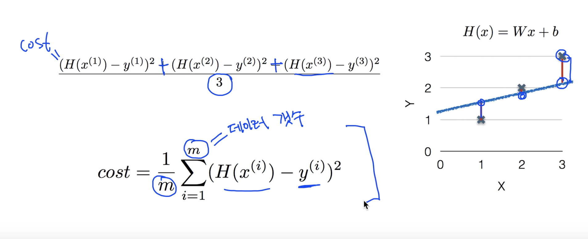 트레이닝 데이터 m개에 대한 cost function